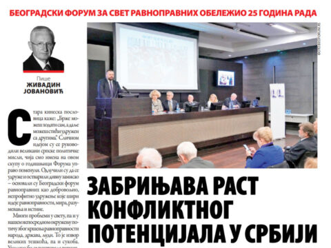 Београдски форум за свет равноправних обележава 25 година рада. Прва међународна конференција Форума којој су присуствовали гости из 80 земаља са свих континената, одржана је…