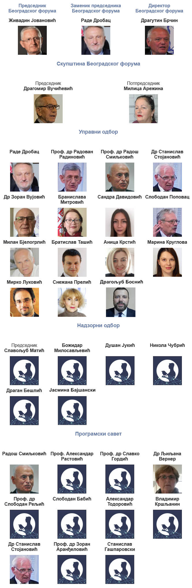 Posted in О нама Састав органа Београдског форума Београдски форум 29. maj 2024. Званични састав органа усвојен 22. априла 2023. године на годишњој Скупштини Београдског форума за свет равноптавних Author: Београдски форум Related Articles Основне чињенице о Београдском форуму